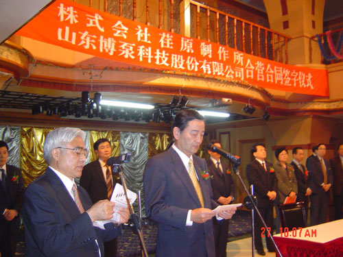 新聞中心 2005年4月27日,在博山萬(wàn)杰國(guó)際大酒店山東博泵科技股份有限公司與日本株式會(huì)社荏原制作所正式簽署了注冊(cè)資本1100萬(wàn)美元的合營(yíng)公司――荏原博泵有限責(zé)任公司。該公司的建立將通過(guò)引進(jìn)世界最大的泵企業(yè)――日本株式會(huì)社荏原制作所的先進(jìn)技術(shù),加快大型泵、高壓泵國(guó)產(chǎn)化進(jìn)程,建成具有國(guó)際競(jìng)爭(zhēng)力的一流企業(yè)。為中國(guó)水電、核電及超臨界火電項(xiàng)目,為南水北調(diào)等大型水力工程提供高質(zhì)量、高技術(shù)含量的一流泵產(chǎn)品,提升中國(guó)機(jī)械工業(yè)技術(shù)、質(zhì)量水平,促進(jìn)產(chǎn)品更新?lián)Q代,為中國(guó)電力、冶金、水力事業(yè)的發(fā)展乃至中國(guó)國(guó)民經(jīng)濟(jì)的發(fā)展做出應(yīng)有的貢獻(xiàn)。