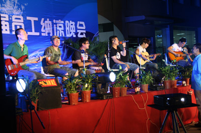 18:30分,晚會節(jié)目正式開始,首先在晨曦樂隊(duì)激情飛揚(yáng)的搖滾歌曲聲中拉開了晚會的序幕。晚會節(jié)目有獨(dú)唱、小合唱、舞蹈等等,演員們的精彩表演,博得了員工們陣陣掌聲和喝彩。特別是生產(chǎn)部門女職工排練的舞蹈,動感十足,展示了女員工的多姿多彩的精神風(fēng)貌。常務(wù)副總經(jīng)理王正軍的一曲豪邁的《紅旗飄飄》,抒發(fā)了荏原博泵員工的愛國情懷;北京事務(wù)所的王信東部長帶來了抒情歌曲《別問》;王虹權(quán)、袁磊、趙喜鵬、周新菊、肖旭、竇群、蔣祺、張雷雷、徐道義、董旭光等員工先后表演了自己準(zhǔn)備的節(jié)目;職工子女表演的拉丁舞更是把晚會的氣氛推向高潮。
