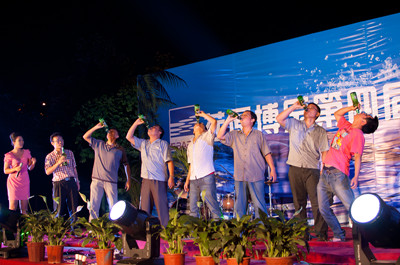 穿插其間的互動游戲――喝啤酒比賽,員工們爭先恐后的參加,最后“啤酒王”的桂冠由公司采購部員工陳永泰獲得。為整個晚會增添了歡樂的氣氛。