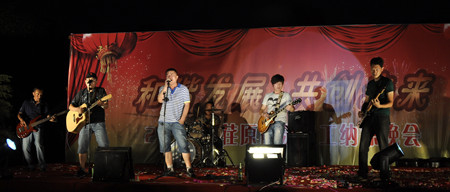 舞蹈《開(kāi)門(mén)紅》寄托著荏原博泵員工對(duì)公司發(fā)展前景的美好期盼,展示了公司女職工的風(fēng)采。20多名復(fù)員軍人用一首《咱當(dāng)兵的人》抒發(fā)了他們保家衛(wèi)國(guó)、貢獻(xiàn)企業(yè)的豪情與壯志;研發(fā)部、技術(shù)部員工帶來(lái)的歌曲《跳起來(lái)》,展示了年輕人的青春與活力;質(zhì)量保證部員工在部長(zhǎng)岳東海帶領(lǐng)下,演唱了歌曲《相親相愛(ài)一家人》,演繹著荏原博泵大家庭的親情、友情。友情樂(lè)隊(duì)帶來(lái)的動(dòng)感十足的歌曲,更是將晚會(huì)的氣氛烘托到高潮。